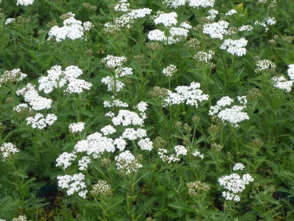 Achillea ‚Schneetaler‘ hat schöne weiße Blüten und weist einen kompakten, aber nicht zu kleiner Wuchs auf. Verblühte Blüten sollten abgeschnitten werden – dann kommt eine sichere zweite Blüte!