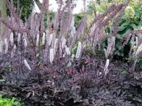 Actaea ‚Black Negligee‘ bildet straff aufrechte Horste; die Blüten sind leicht geschwungen. Die Blätter sind feingliedrig, tief geschlitzt und wirklich von fast schwarzer Farbe. Ein absoluter Blickfang im schattigen Teil des Gartens.