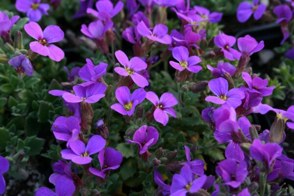 Aubrieta x cultorum ‚Blaumeise‘ Blaukissen – fast der Inbegriff von üppiger Blütenfülle, die den Winter vertreibt. Die Pflanzen bilden dichte, überhängende Polster. Als klassische Steingartenpflanze gut zu verwenden, wunderbar an Trockenmauern. Sehr gut für Kübelpflanzung und Balkonkästen. An die sonnige Seite gepflanzt, fühlt sich die Pflanze sehr wohl und schattiert gleichzeitig die Wände des Troges, lässt die Bodentemperatur nicht so stark steigen und minimiert den Wasserverbrauch.