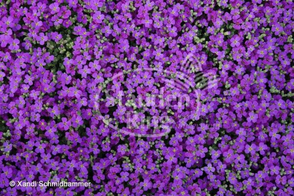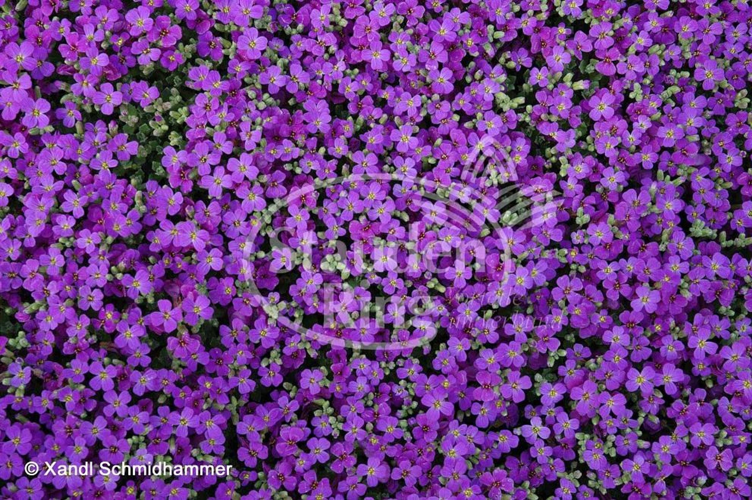 Aubrieta Blaumeise hat etwas größere Blüten, sehr reichblütig, ein schönes violettes Blütenpolster lässt zur Blütezeit kein Laub mehr erkennen.