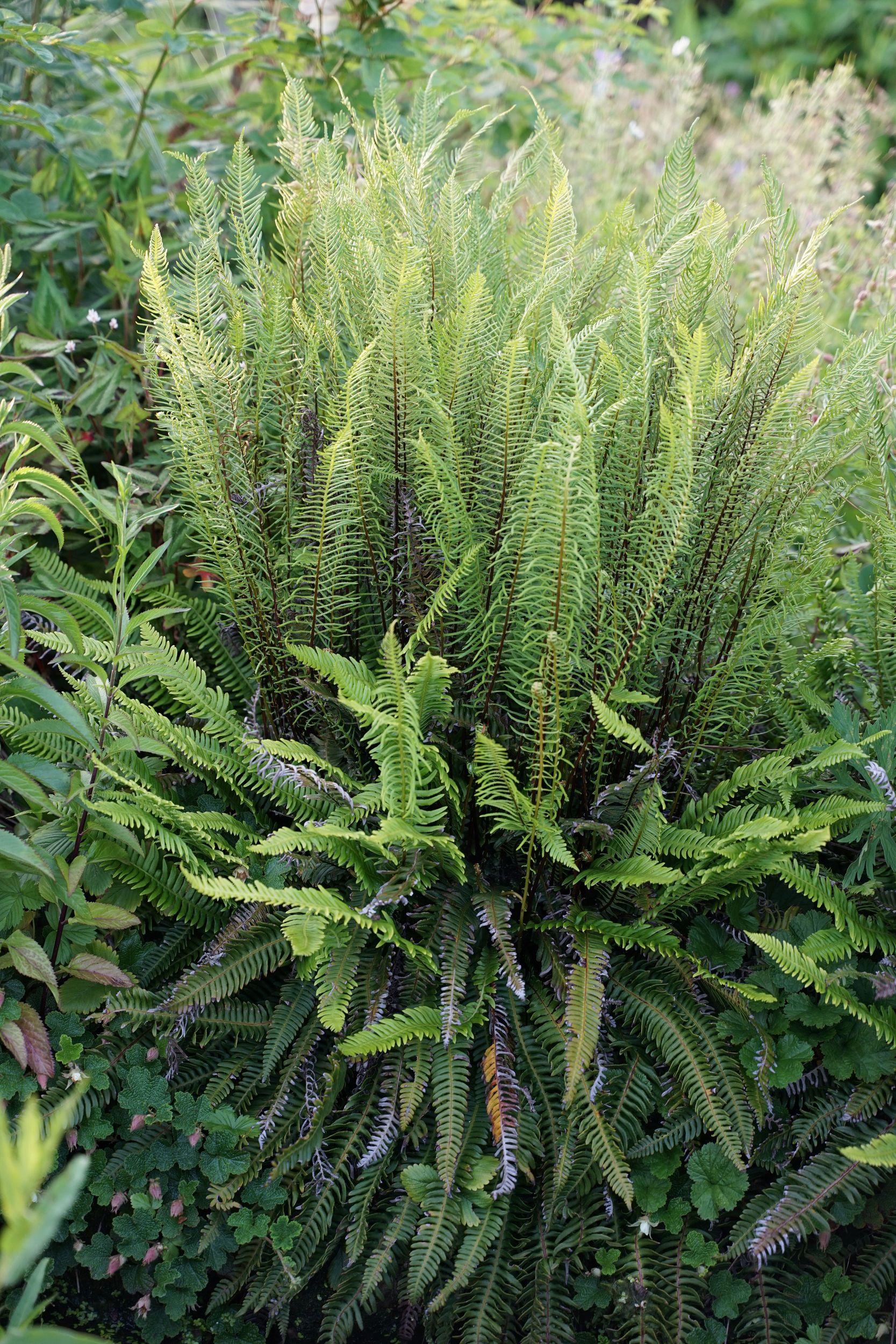Der hübsche Farn wächst eher langsam, sein stabiles immergrünes Laub bleibt flach am Boden. Im Sommer stehen die aufrechten Sporenwedel wie Blüten deutlich über dem Laub. Die Pflanze benötigt vollen Schatten und kalkfreien Boden – eine schöne Ergänzung zu Rhododendron und Azaleen, aber auch im absonnigen Steingarten gut in Mauerfugen zu verwenden.