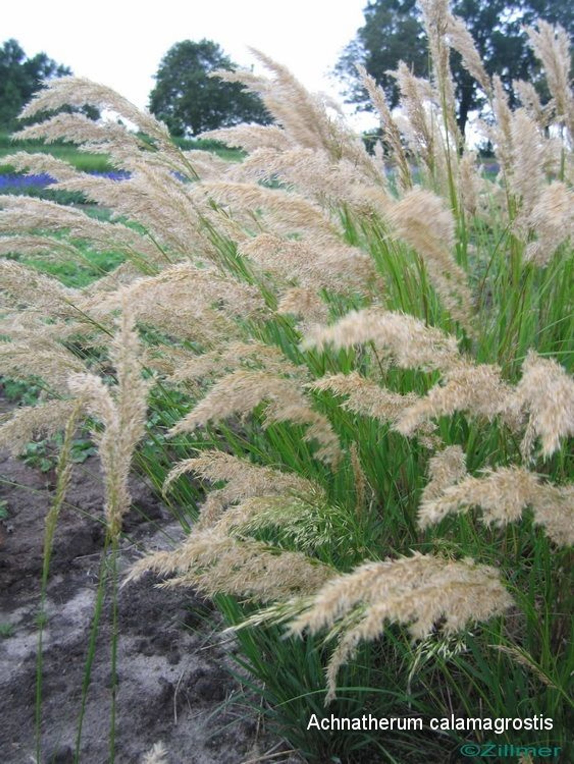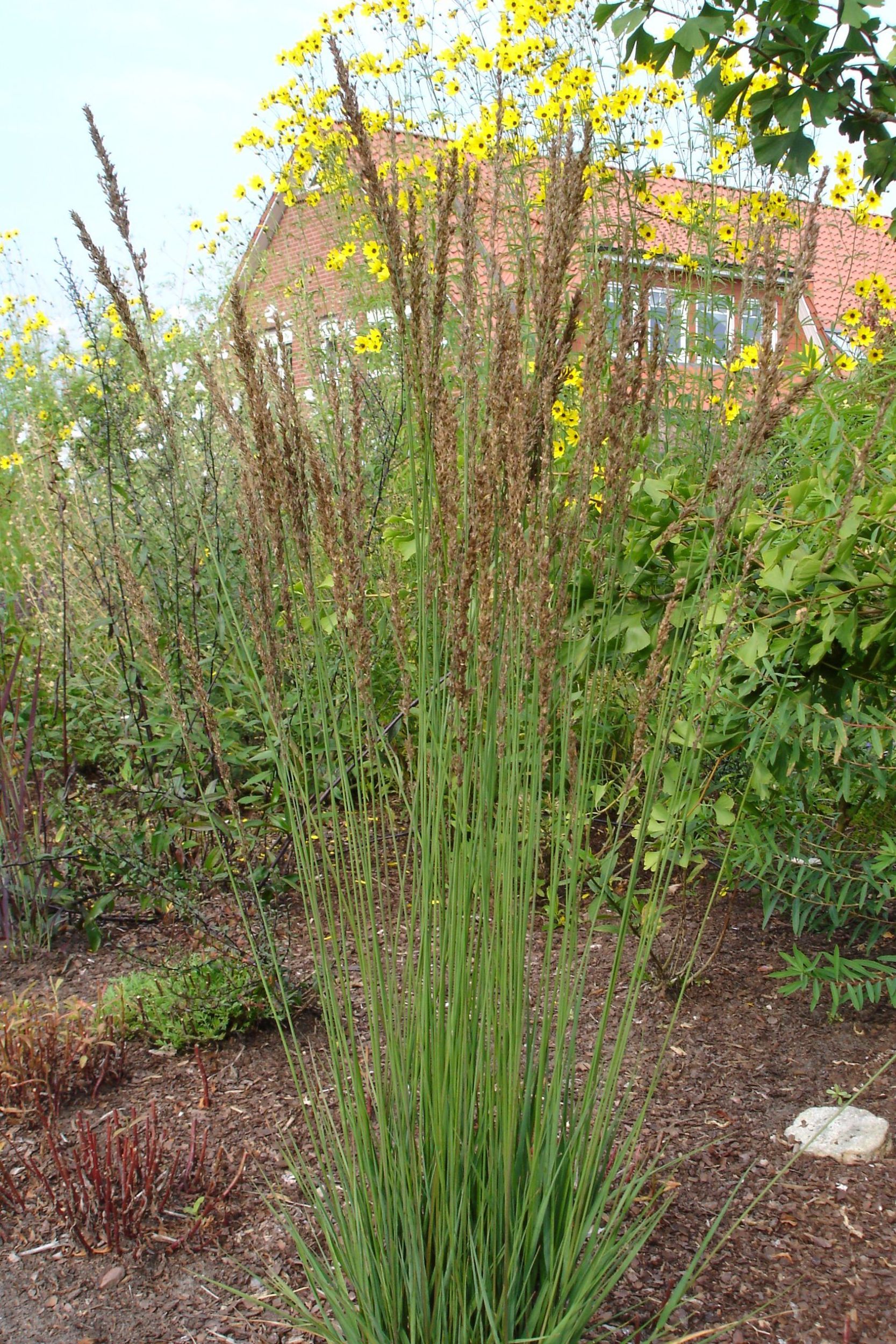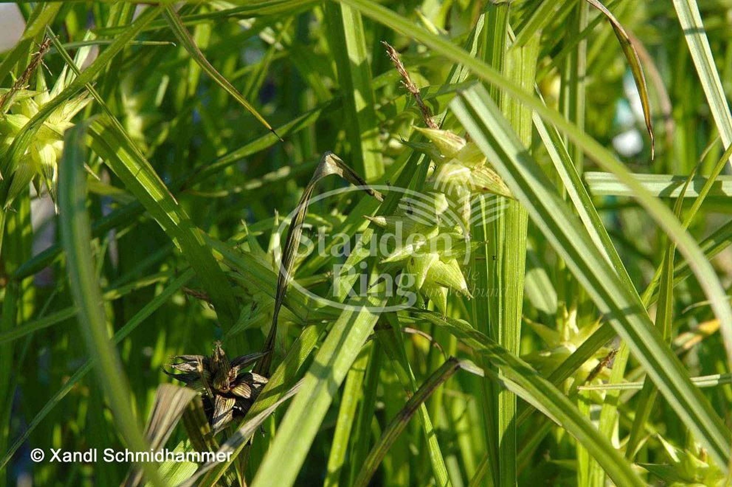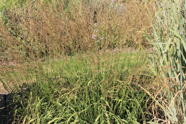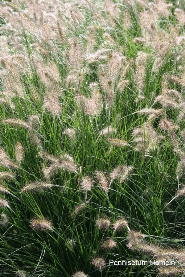 Gräser dienen nicht nur als natürlicher Sichtschutz, sondern bringen auch optisch verschiedenste Highlights in den Garten. Bei diesem Paket sind die Bodendecker robust, aber doch mit einer feinen Blüte am Ende des Frühjahrs bis zum Frühsommer. Das Silber-Ährengras hat eine sehr schöne, leichte Wirkung. Dagegen tritt die Morgensternsegge mit kräftigem Laub und besonderen Fruchtkörpern auf. Plattährengras und Pfeifengräser haben sehr unterschiedliche, aber ausdrucksstarke Blüten, die gefolgt werden von der Blütenwolke des Präriegrases – eines der wenigen Gräser, das duftet. Das Chinaschilf ist eine kräftige Gestalt, es sollte also eher prominent, nicht am Rande des Beetes verwendet werden. Ein paar Blütentupfer müssen sein: Der Storchschnabel unterlegt das Beet mit einem lang blühenden Blütenteppich. Die Prachtkerze kommt in ihrer grazilen Wirkung den Gräsern nahe, während die Blüten des Eisenkrautes über der Pflanzung des Beetes zu schweben scheinen.