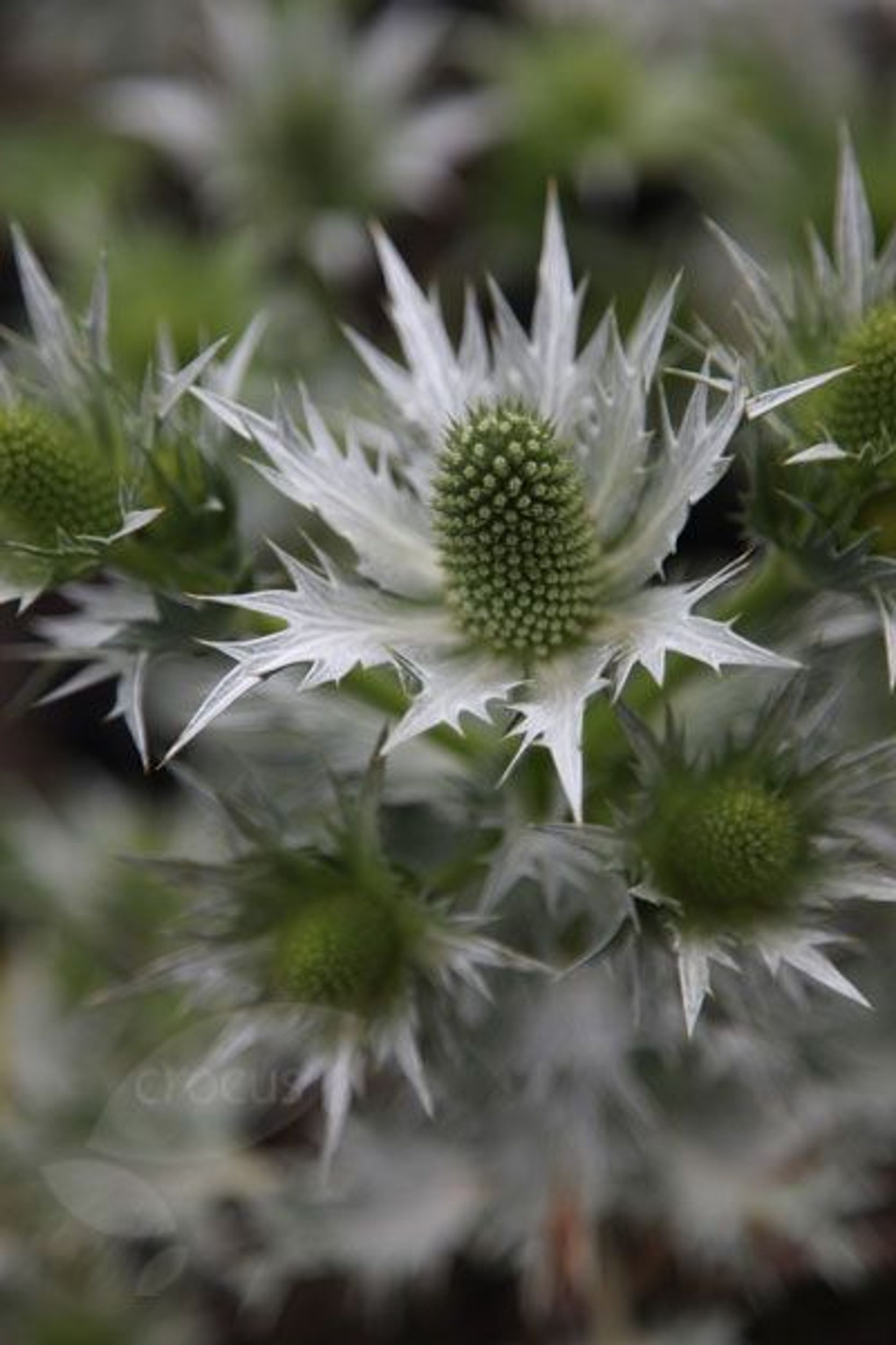 Ein richtiger Trockenkünstler und je wärmer und sonniger der Standort ist, um so markanter färben sich diese Stauden aus. Das vielgestaltige Laub ist im Frühjahr grün, färbt sich dann im Lauf des Sommers graugrün bis silbrig, die Blütenstängel sind hart und stabil, tragen markante Blütenköpfchen, die ein Kranz von Kelchblättern umgibt. Silbergrau sind diese Blüten zunächst, färben sich dann in ein Silbrig bis Blau aus. Sandige, steinige aber auch eher trockene Lehmböden sind gut geeignet, Dünger mögen diese Pflanzen eher nicht, dadurch leidet die Winterhärte und die Pflanzen färben sich nicht so gut aus. Die Pflanze ist ein Paradies für Schmetterlinge und andere Insekten.
