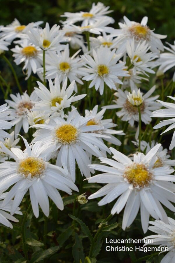 Beim Anblick dieser Pflanzenkombination kommen Erinnerungen an Omas Staudengarten hoch. Blauer Rittersporn und Margeriten waren dort genauso wie Astern und Steppen-Salbei zu finden. In diesem Nostalgiebeet haben wir robuste Sorten dieser Klassiker integriert: Der Rittersporn ‘Atlantis’ bliebt schön kompakt und standfest. Die halbgefüllte Margerite ‘Christine Hagemann’ strahlt in Weiß und hat eine tolle Fernwirkung.