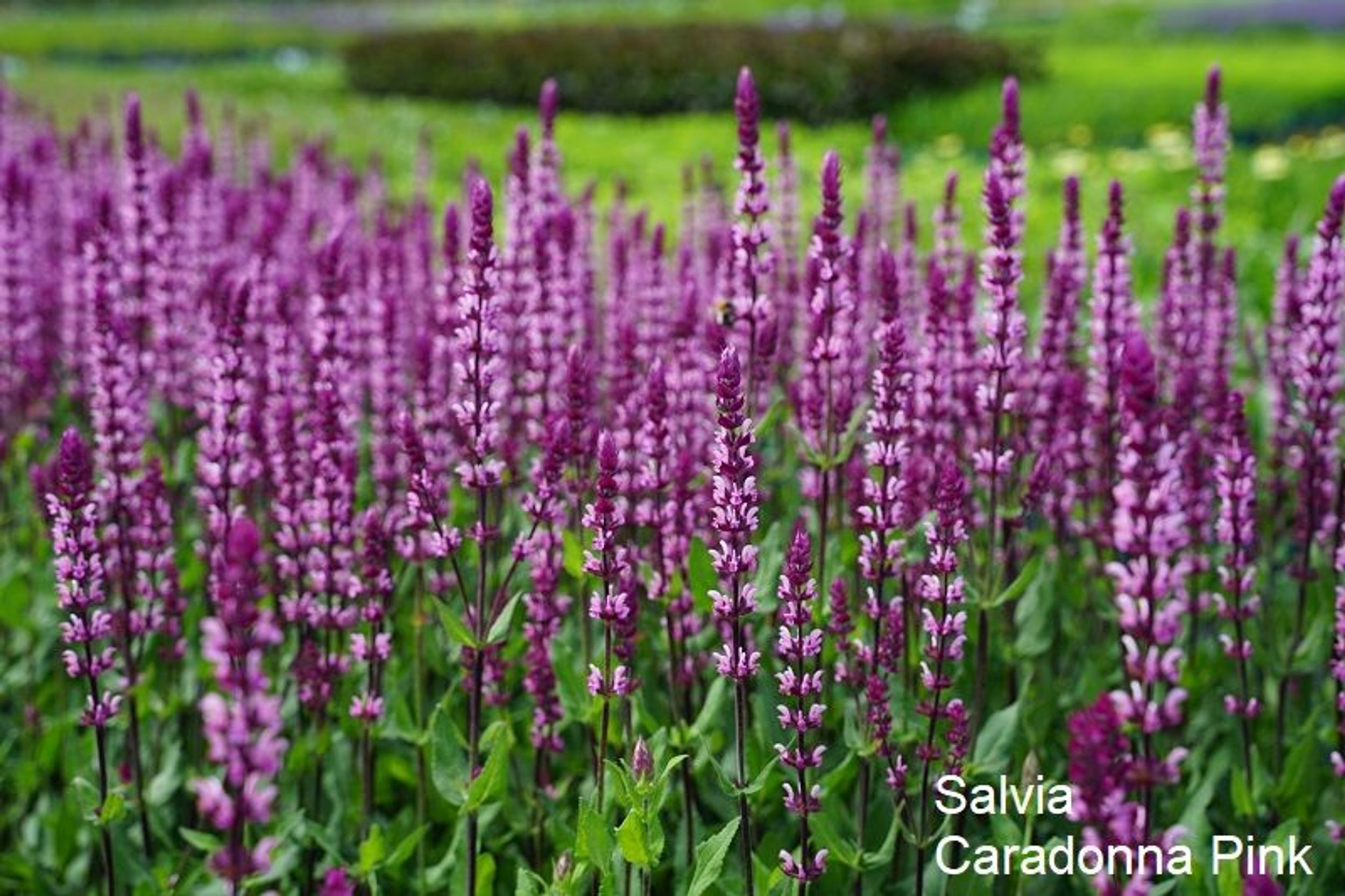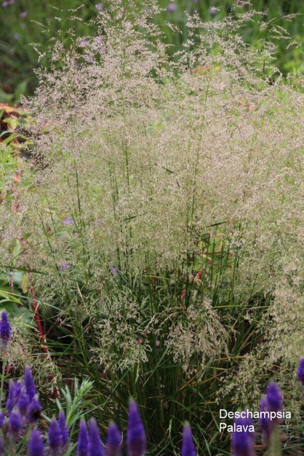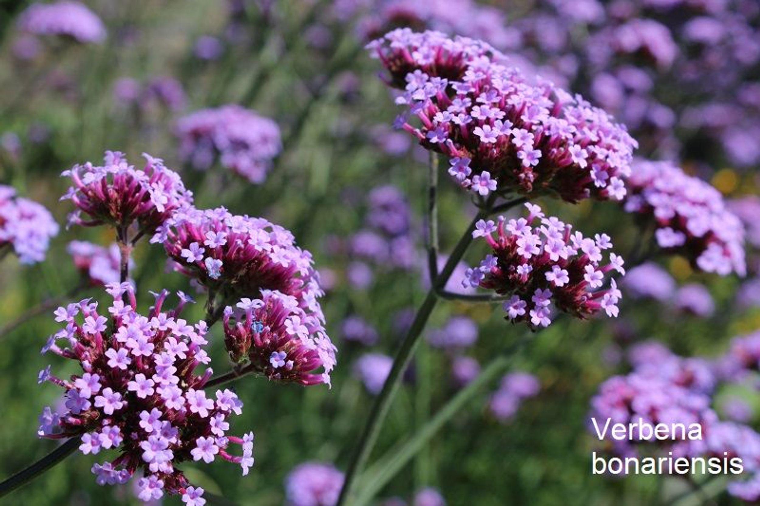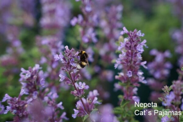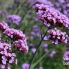 Für dauerhafte Struktur und Farbe sorgen Katzenminze, Berg-Aster, Perlkörbchen und der Steppen-Salbei ‘Caradonna Pink’. Für noch mehr Verspieltheit haben wir die Kleine Wald- Schmiele integriert, deren wolkenartige Silhouette wie ein Weichzeichner wirkt. Und über dem Beet schwebend lassen sich die kleinen Blüten des Eisenkrauts im Wind wiegen. Der Zier-Lauch ‘Lavender Bubbles’ bleibt mit einer Höhe von nur 50 cm schön kompakt und sein grasartiges Laub bis zum Winter sehr ansehnlich.