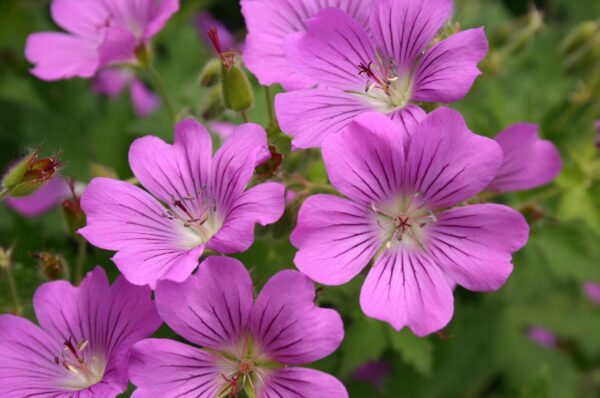 Empfehlenswerte, dichtbuschig wachsende Geranium-Sorte mit runden großen violettrosafarbenen Blüten. Die Blätter verfärben sich im Herbst auffallend gelb. Die Pflanze bevorzugt frischen, humosen und nährstoffreichen Boden, verträgt aber auch zeitweise Trockenheit. Ein vollständiger Rückschnitt nach der Blüte ergibt eine zweite Blüte im September. Alle Gartenböden sind geeignet, die Lage kann sonnig bis halbschattig sein. Auch der Wurzeldruck von größeren Gehölzen wird bestens vertragen.
