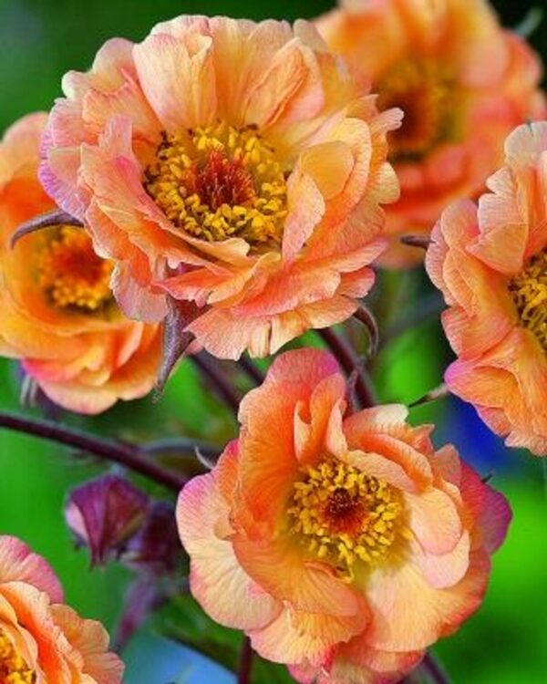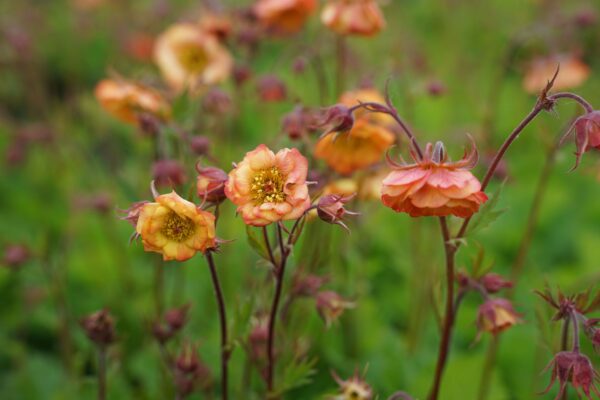 Geum Cocktail ‚Mai Tai‘ ® Wunderbare Blüten, halbgefüllt, sehr aparte apricot- bis pfirsichfarbenen Blüten auf dunklen Stielen. Sehr reichblühend und gesund.