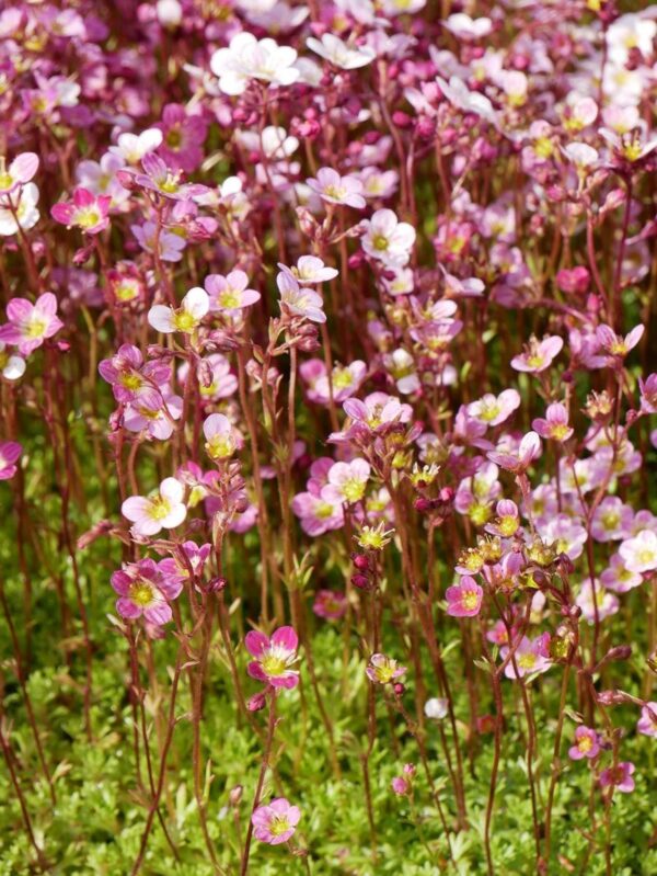 In diesem Paket finden sich einige langblühende Stauden im Farbspektrum blauviolett bis pink. Der Frühling wird durch den bekannten rosa Steinbrech eingeläutet, der durch seine grünen Polster den Vordergrund gut bedeckt. Interessante und moderne Strukturen entstehen durch den Zierlauch und die spätblühende und flache weiße Aster, die den Herbst nochmal reich verabschiedet. Durch immergrüne Halbsträucher wie der Gamander und das Sonnenröschen hat die Grabbepflanzung auch im Winter Struktur und bietet Platz zu Allerheiligen noch ein Gesteck aufzulegen.