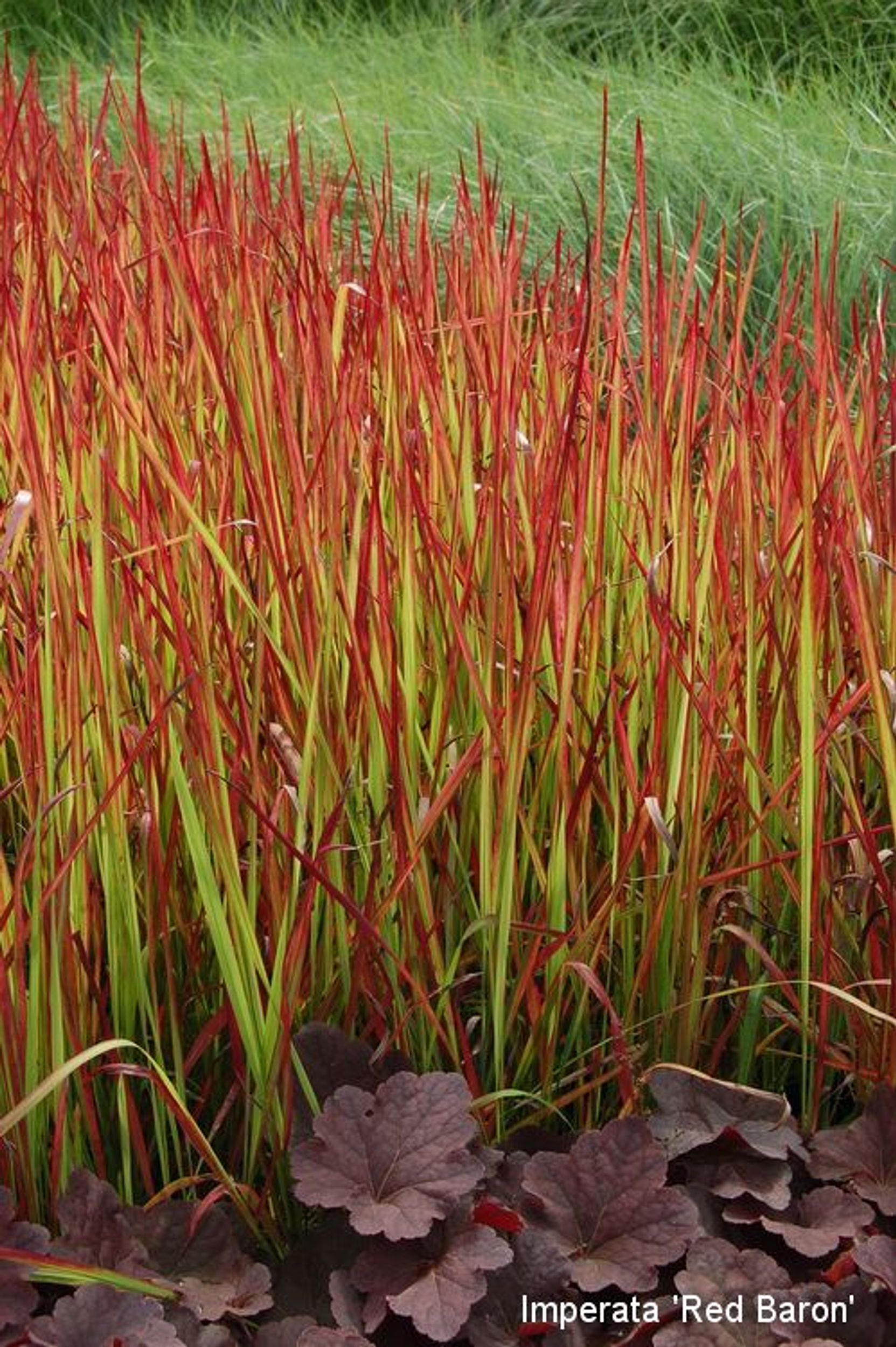 Es muss nicht immer massiv und undurchdringlich sein – machen Sie Ihre Terrasse oder die Grenze Ihres Gartens zu einem eleganten Schmuckstück. Das Gerüst bildet das Reitgras. Dessen hohe Stängel erscheinen bereits im Juni in frischgrüner Farbe, färben sich im Sommer gelb und bleiben den ganzen Winter aufrecht in einem dunkler werdenden Braunton erhalten. Das Silberährengras macht seinem Namen alle Ehre, die silbrigen Ähren sind leicht überhängend als Gegensatz zum Reitgras. In fast kugeliger Form erscheint das Lampenputzergras, dessen stabile, walzenförmigen Blütenstände mit weißen Spitzen einen ganz eigenen Charakter haben. Dazwischen greift die Neuseeland-Segge ‚Prairie Fire‘ den orange-braunen Grundton der Pflanzung auf. Als zusätzlicher Farbklecks mischt sich in eigenwilliger kräftig roter Farbe das japanische Blutgras dazwischen.