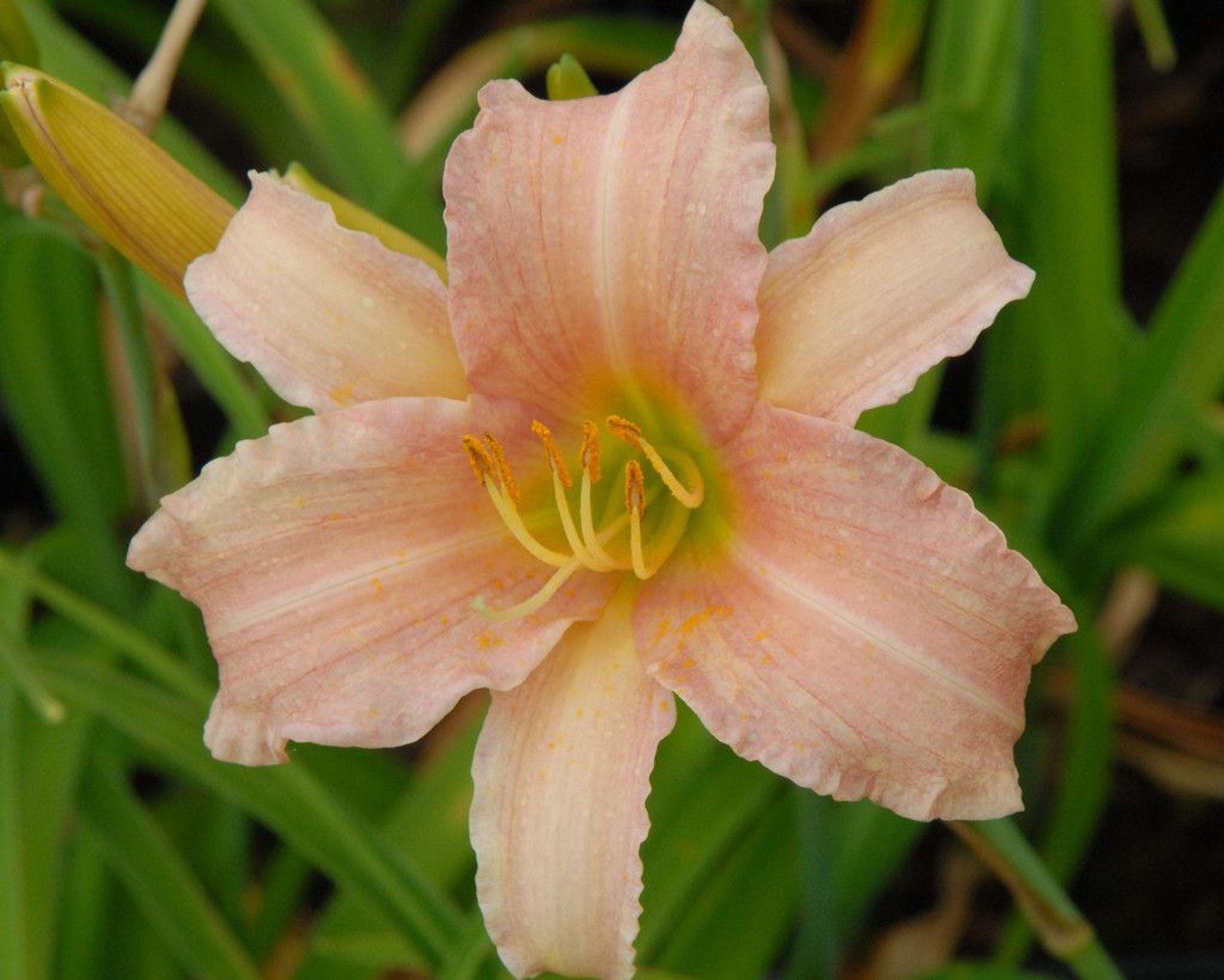 Hemerocallis ‚Luxury Lace‘ hat große Blüten in hellem Rosa. Eine sehr gute, seit langem bewährte Sorte, die auch im leichten Schatten sicher blüht. Duftend.