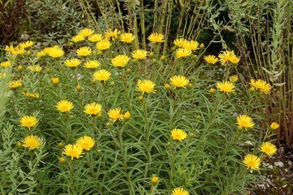 Der Zwergalant ist für trockene Standorte gut geeignet – kommt aus den Steppen Ost- und Mitteleuropas. Inula ensifolia besitzt strahlend gelbe Blüten auf dunkelgrün, lanzettlichem Laub. Die Staude ist gut bodenbedeckend und bestens für Naturgärten in trockenen Lagen geeignet.
