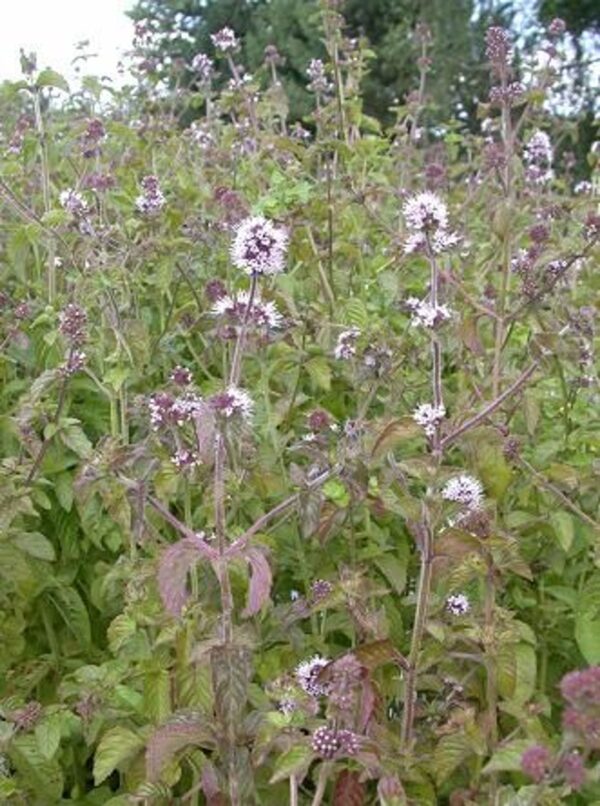 Der Austrieb ist dunkelbraunrot, das Laub färbt sich dann in eine sattes Grün, kann bei hoher Sonneneinstrahlung wieder ins Rötliche wechseln. Hübsche Blüte, intensiver Duft. Gutes Wachstum durch viele unterirdische Ausläufer, braucht daher kräftige Partner, wird aber nicht lästig. Und kein Wunder: diese Minze passt gut zu Fischgerichten!