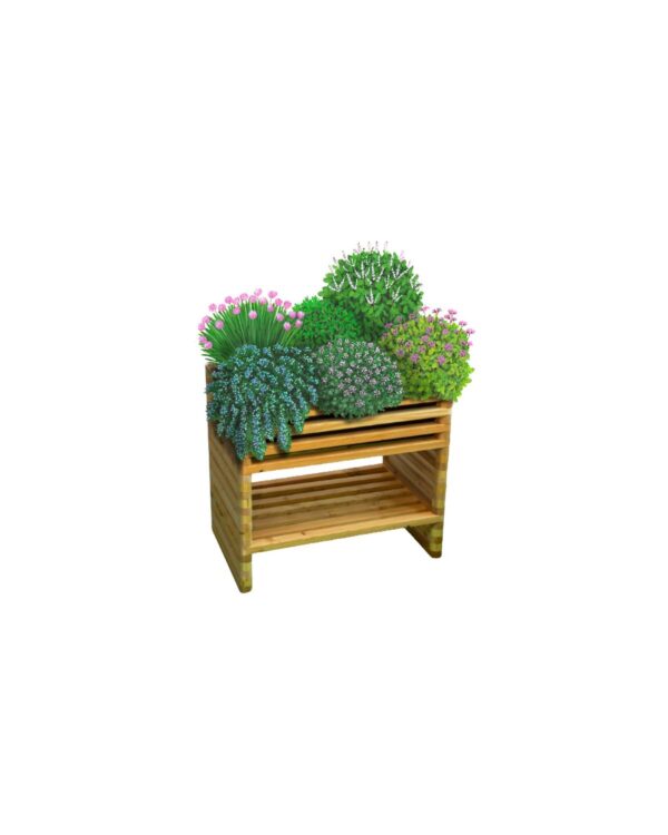 Hochbeet Sissi Kräuter – die kleine Alternative zum Hochbeet Maximilian Kräuter. Passt auch auf kleine Terrassen oder den Balkon und bietet mit dem integrierten Stauraum Platz für Ihre Gartenutensilien. Unsere mehrjährigen, winterharten Kräuter liefern Ihnen zuverlässlich frische Kräuter – und das über viele Jahre hinweg. Die ökologische und optisch hochwertige Alternative zu den „Wegwerfkräutern“ aus dem Supermarkt.