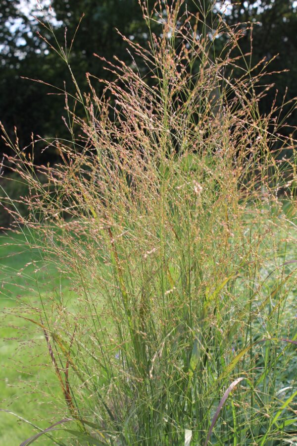 Auch die Rutenhirse hat in den letzten Jahren einen Siegeszug durch die Sortimente angetreten. Neue Sorten mit guten Eigenschaften – Standfestigkeit, verschieden Blattfärbungen, markante aber trotzdem feine Blüte – haben sich in den Sortimenten durchgesetzt. Lange, schmale Blätter erschienen zartgrün im Frühjahr, färben sich dann ins Dunkelgrün, zum Teil auch ins Rot. Die feinen Blüten erscheinen ab Juli und bleiben bis in den Herbst erhalten. Mit einer schönen Herbstfärbung gehen die Pflanzen in den Winter, das Laub bleibt stabil bis zum Frühjahr stehen, lässt Beete nicht ganz kahl erscheinen und bietet vielen Insekten eine Überwinterungsmöglichkeit.