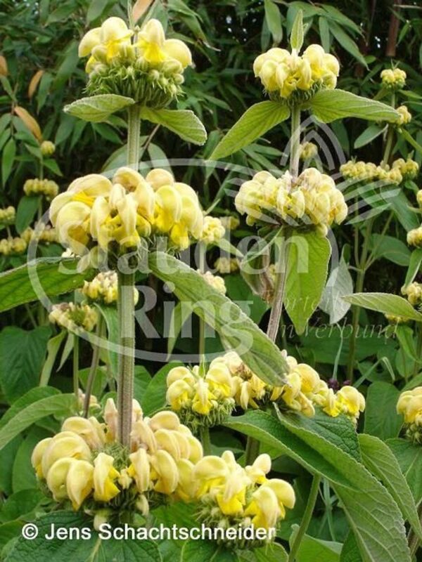 Brandkraut ist eine wirkungsvolle Blütenstaude, die das ganze Jahr ansprechend wirkt. An kräftigen Stängeln erscheinen in Etagen übereinander gelbe Blütenquirle. Die Fruchtstände sind ein schöner, haltbarer Schmuck und bleiben bis ins Frühjahr hinein attraktiv. Das behaarte grüne Laub ist immergrün mit einem leichten grauen Schimmer. Die Pflanze hat ein kräftiges Wachstum, sollte also nicht mit schwachwachsenden Stauden zusammen gepflanzt werden. Alle Bodenarten sind geeignet, im Sommer sollte es – trotz des Namens – nicht zu trocken sein. Sonniger Standort, aber auch lichter Schatten ist gut möglich.