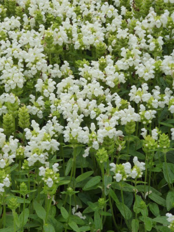 Prunella grandiflora ‚Alba‘ ist eine großblütige Kulturform. Genauso robust wie die Wildform, aber mit deutlich größeren Blüten in reinem Weiß überfrischgrünem Laub. Und vor allem: nicht so stark wachsend, also gut auch in kleinen Beeten, Trögen und Balkonkästen zu halten. Neben sonnigen Standorten sind auch leicht schattige Standorte geeignet.