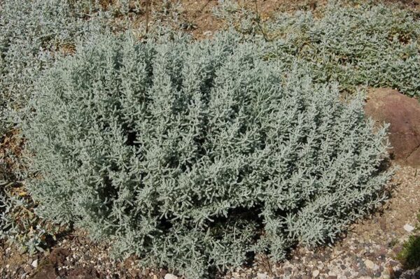 Das Heiligenkraut ist ein immergrüner Halbstrauch, die Blätter sind sehr fein gegliedert.