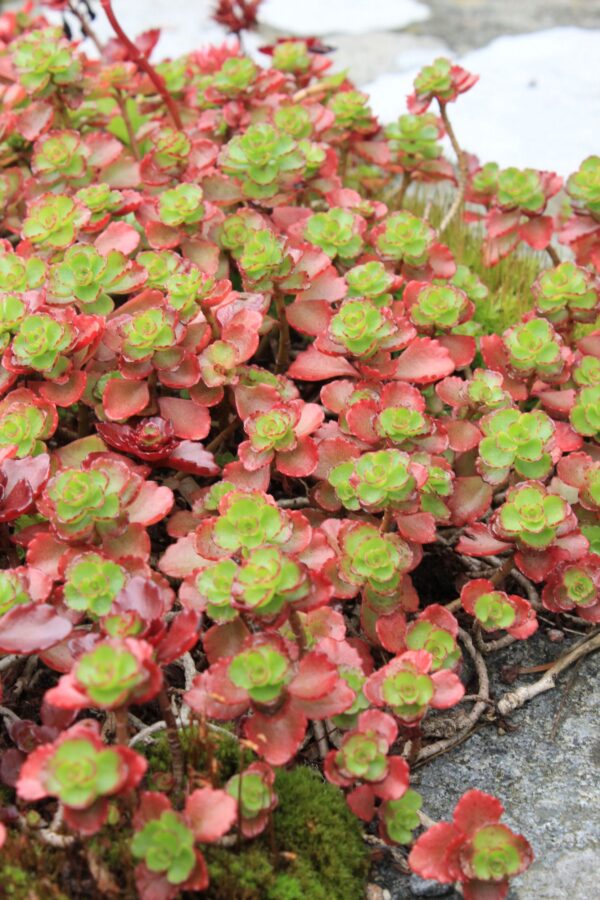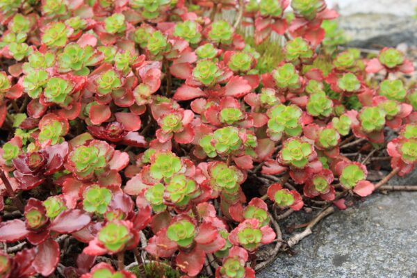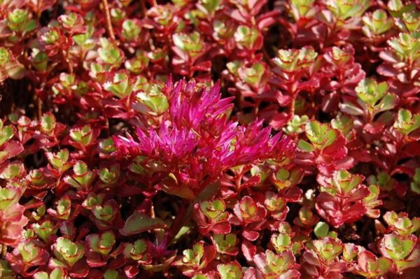 Diese Fetthenne ist die rotlaubige Form des grünen Klassikers. Immergrünes Polster mir rosettenartig angeordneten Laubblättern. Gut trockenresistent, bestens für Mauerritzen und als Begrünung zwischen Plattenwegen geeignet. Ebenso für die Dachbegrünung geeignet, schöner Bodedecker in sonnigen Bereichen und für Gräber eine unkomplizierte und dauerhafte Bepflanzung. Rote Blüten.