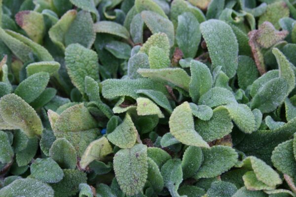 Dichtes, silbergrau und stark behaartes immergrünes Laub