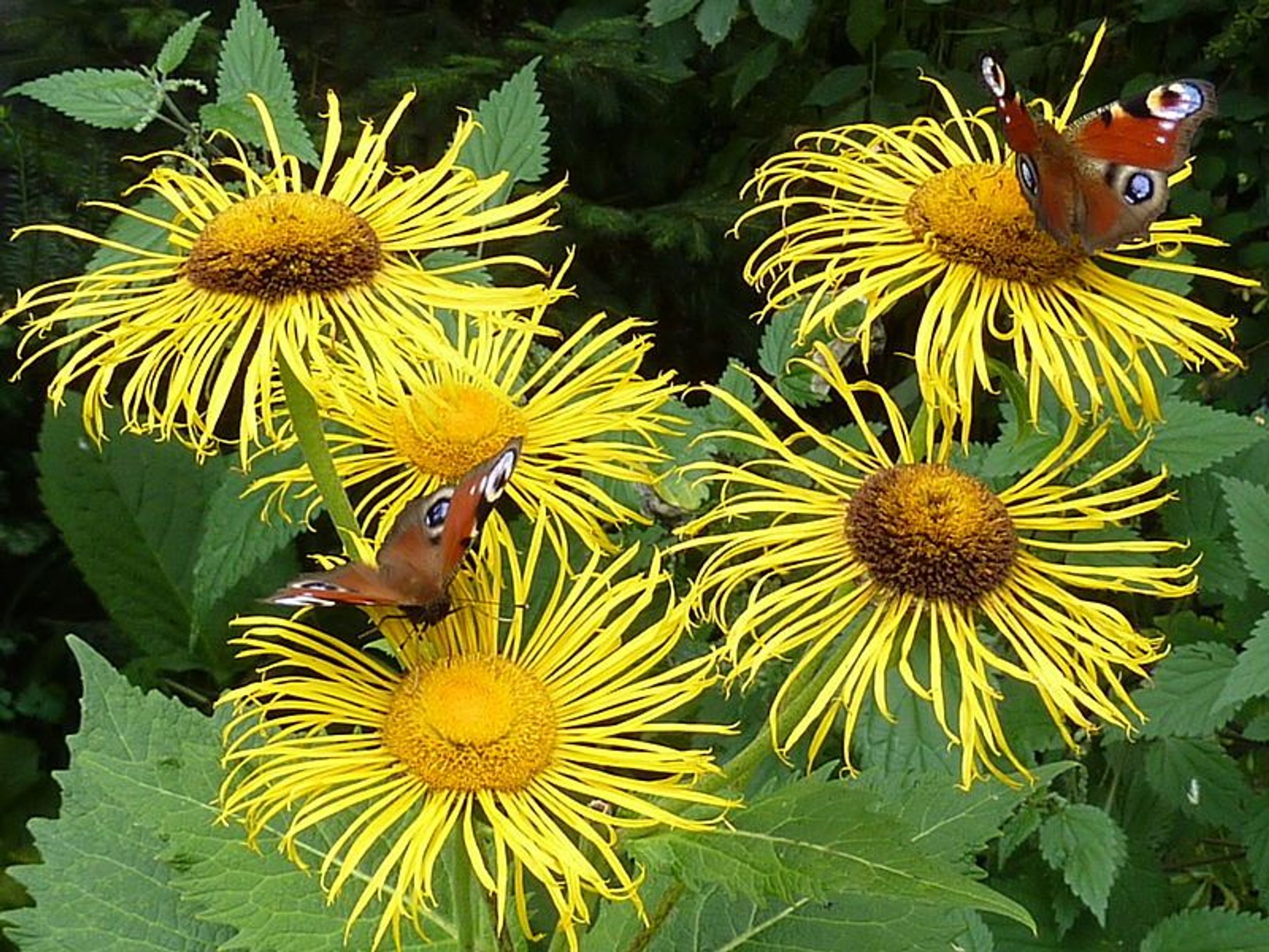 Telekia speciosa Die Pflanze wächst kräftig mit großen Blättern, stabilen Stängeln und ist eine beeindruckende Gestalt im Garten. Sie braucht Platz zur Entwicklung, daher nur für größere Beete geeignet. Große goldgelbe Blüten mit zarten, leicht hängenden Blütenblättern.