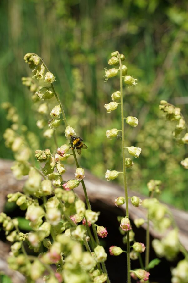Hellgrünes Laub, aus denen im späten Frühling die traubigen Blütenstände weit herausragen. Im Herbst färbt sich das Laub rot und bleibt den Winter über erhalten.