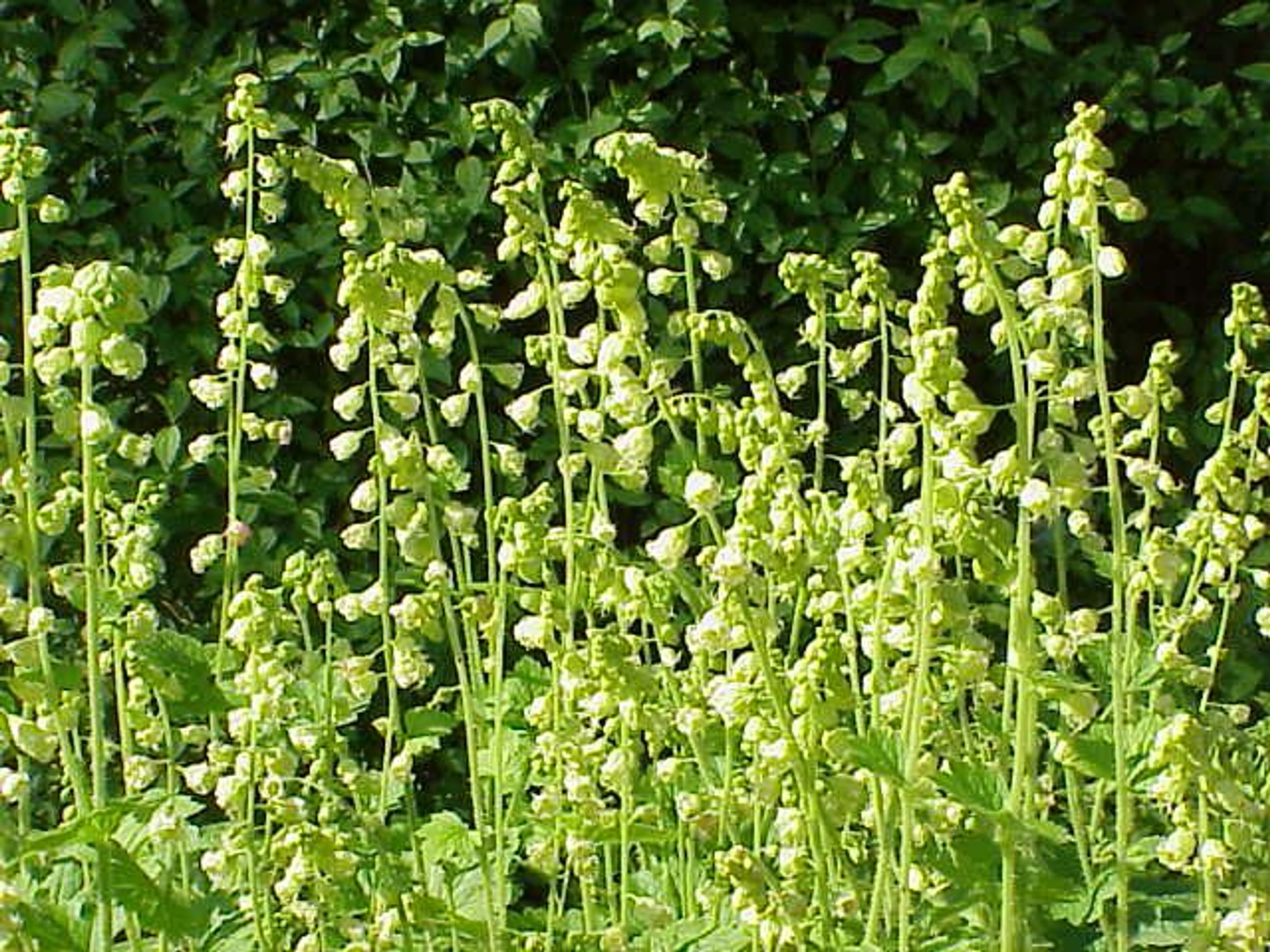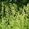 Blüten stehen in dicht geformten Trauben deutlich über dem Laub, die grüngelbe Blütenfarbe ist eine eher unspektakuläre Schönheit.