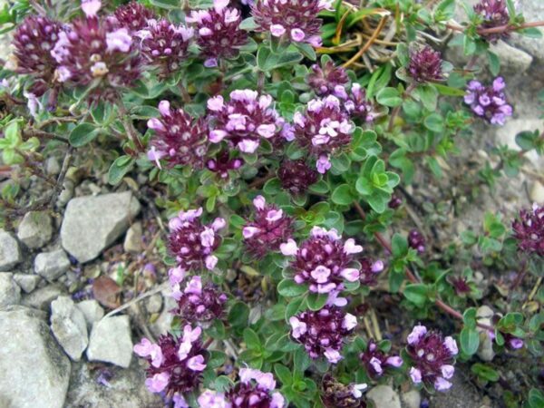 Thymus pulegioides Thymian – ein wertvoller ganz flach wachsender Bodendecker, der aber auch Mauern, Pflasterfugen, Trögen und Balkonkästen zuverlässig wächst.
