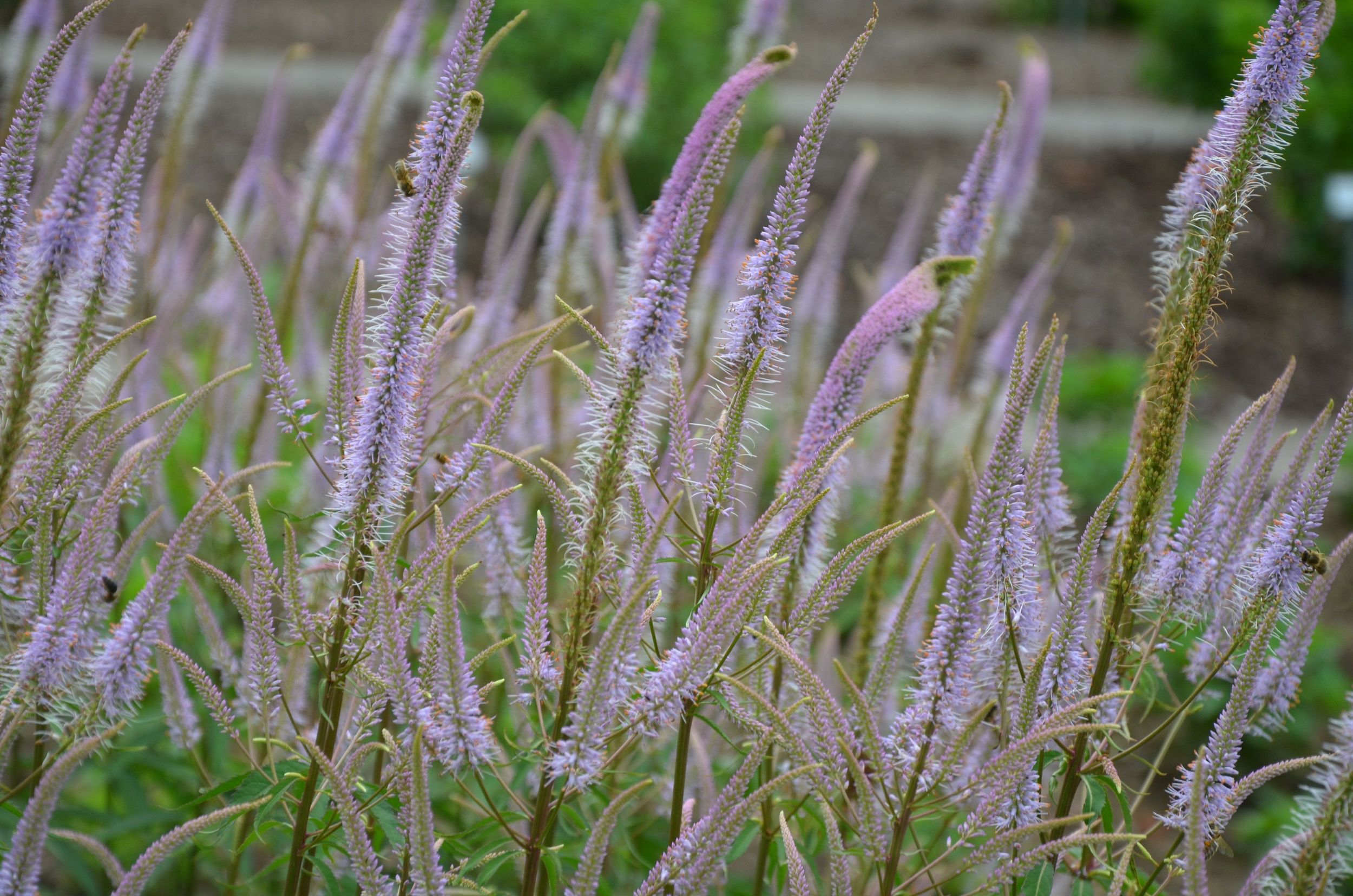 Veronicastrum virginicum ‚Adoration‘ Diese Pflanzen sind eng mit Veronica verwandt, unterscheiden sich aber durch einen stabilen, kantigen Stängel der an den Knoten rundum mit schmalen, lanzettlichen Blättern besetzt ist – schon ohne Blüten eine markante Erscheinung. Die Blütenkerzen sind zahlreich und reich verzweigt, nach der Blüte kann diese über dem Laub abgeschnitten werden, dann erfolgt noch eine Nachblüte. Alle Gartenböden sind geeignet, nicht zu trocken, sonniger bis absonniger Standort.