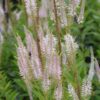 Veronicastrum virginicum ‚Pink Glow‘ blüht hellrosa, bleibt deutlich kleiner als die andren Arten und ist somit auch in kleinen Beeten eine gute Strukturpflanze.