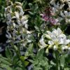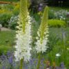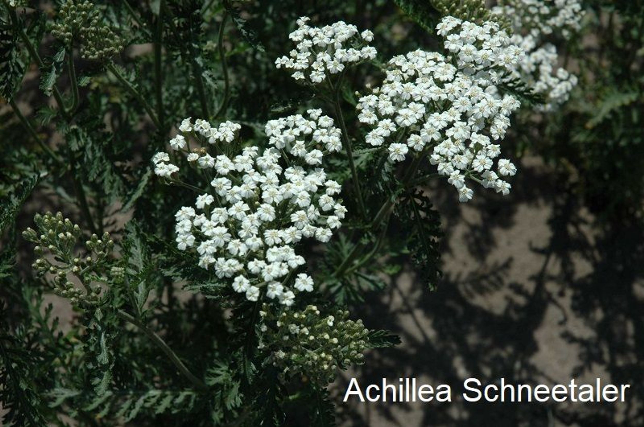 Im weißen Sonnenbeet finden wir weniger Blattstrukturen und Grüntöne, dafür mehr Gräser und mit Ihnen etwas mehr Prärie- Charakter. Das tut der Eleganz jedoch keinen Abbruch, denn der gefüllte Bauernjasmin ‚Virginal‘ oder die Nostalgie- Strauchrose ‚Artemis‘ geben einen dementsprechenden Rahmen für Spornblume, Wildaster oder den weißen Sonnenhut. Den spannenden Kontrast bilden dann Gräser wie Rutenhirse, Lampenputzergras oder Schaf- Schwingel.
